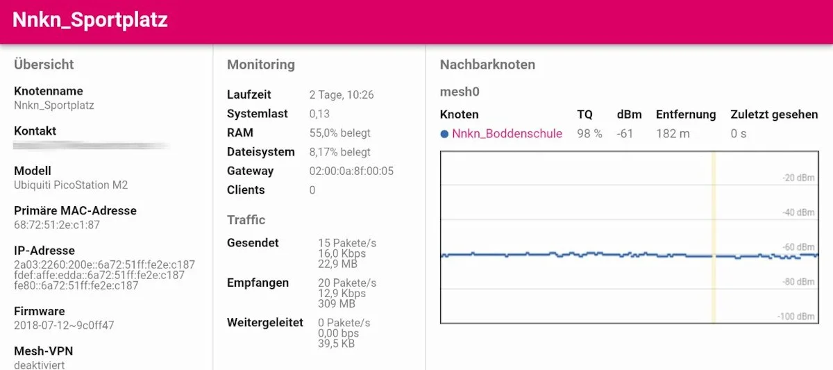 Die aktuelle Version v2018.1 unterstützt wiederum eine Reihe neuer Router. Wesentlichste Neuerung ist aber der Umstieg auf andere Mesh-Protokolle: Für die drahtlose Verbindung der Router untereinander (Wireless Mesh Verfahren) kam bisher IBSS zum Einsatz. Kommende WLAN-Chipsets werden keinen Support für IBSS mehr aufweisen, deshalb stellen wir das Mesh-Protokoll auf 802.11s um. Auch bei der kabelgebundenen Vernetzung der Router (Mesh-on-WAN/LAN) kommt ab sofort ein neues Protokoll zum Einsatz.